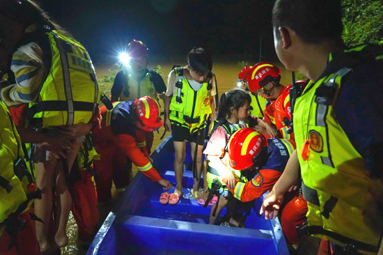 重庆市专业应急救援总队转移被困儿童(重庆市应急管理局供图)