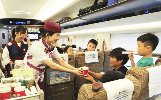 据了解,随着气温攀升,7月以来重庆市民到万州、贵阳、石柱、利川等沿线城市避暑旅游的客流增幅明显。每年高温时段,重庆客运段联合重庆铁路疾控所,都会在部分高铁动车上开展此类送清凉活动。