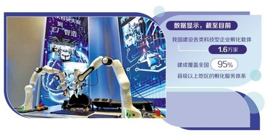 数据显示,截至目前,我国建设各类科技型企业孵化载体1.6万家,建成覆盖全国95%县级以上地区的孵化服务体系;科技型企业孵化器数量居全球第一位,在50多个国家和地区布局。