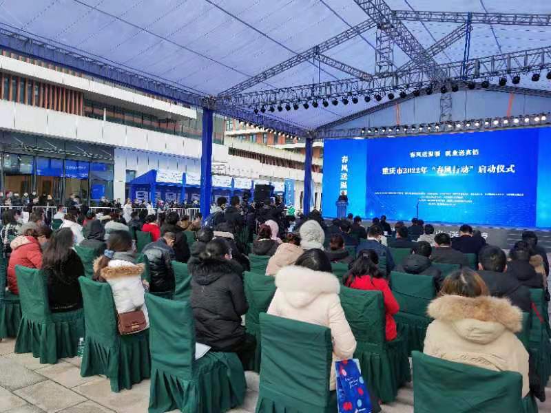 本网重庆讯:2月8日,由(重庆)市人力社保局、市经信委、市民政局、市交通局、市乡村振兴局、市总工会、团市委、市妇联联合主办的2022年重庆“春风行动”启动仪式在綦江区举行,这也标志着(重庆)全市范围内,系列就业帮扶活动正式拉开序幕。据悉,到3月底前,(重庆)全市将按照疫情防控要求,举办10场直播带岗、100场线上网络招聘、1000场小型现场洽谈,发布20万个就业岗位信息。